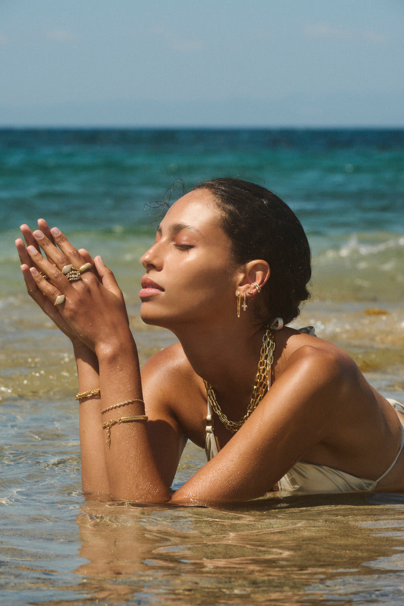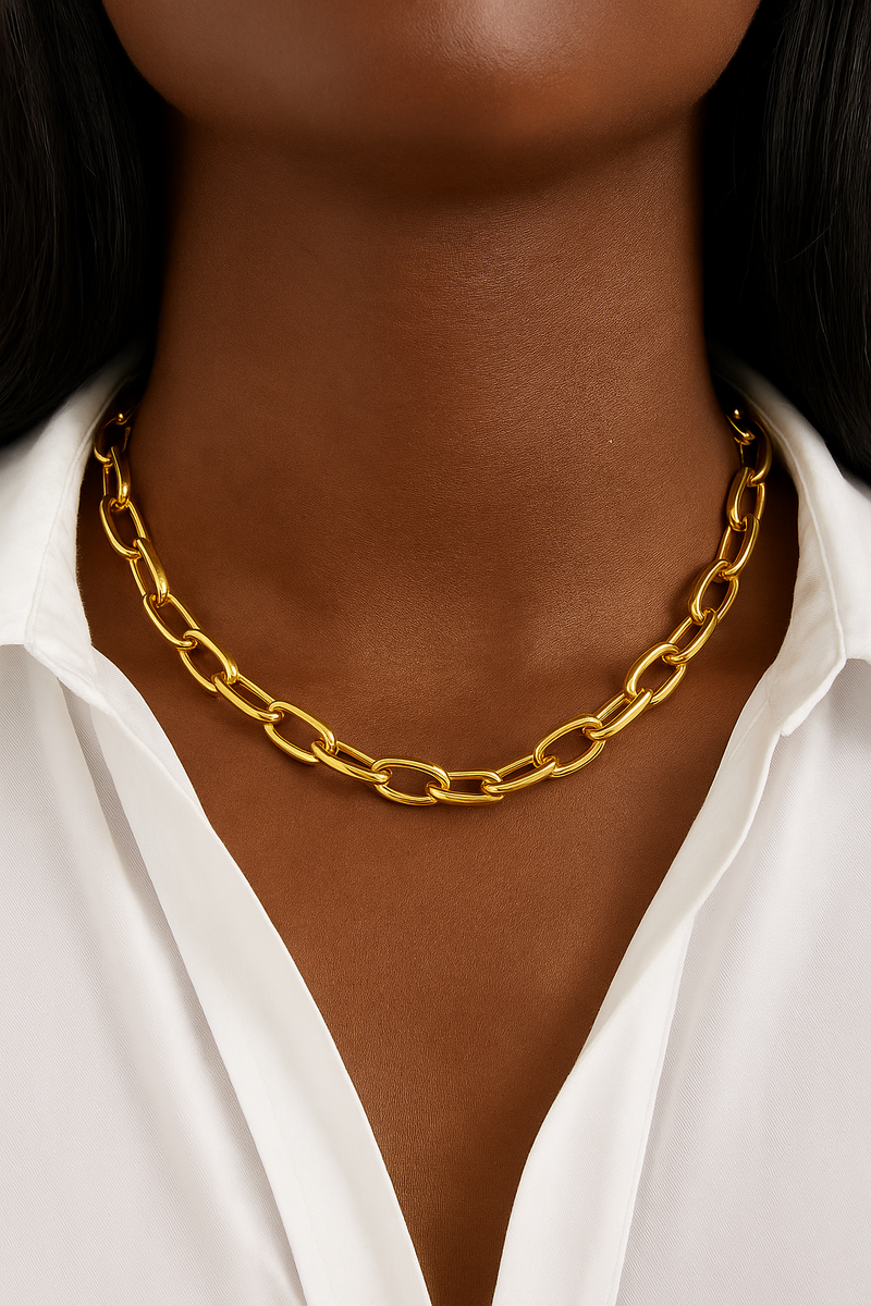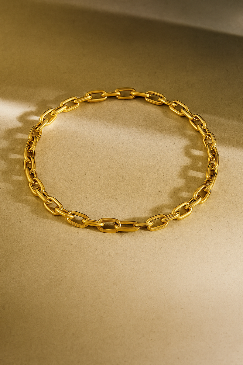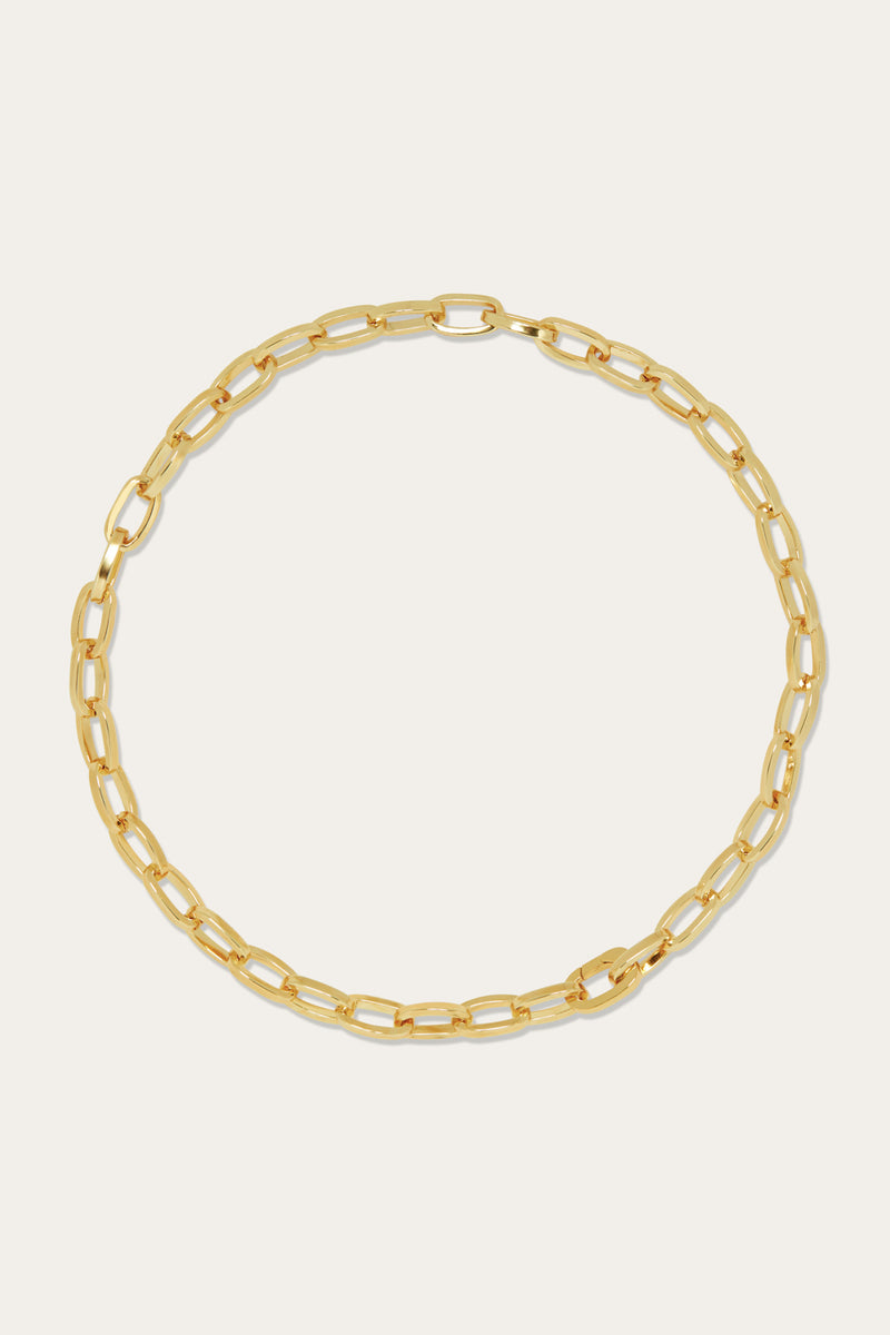 The most versatile piece of jewelry for the season beyond is the chunky chain necklace. Made from 18ct gold plated brass, the links feel sleek and minimal despite the chunky proportions. Wear it all day and night and make it your signature style.