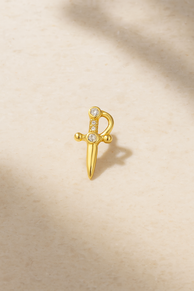 Made from 925 sterling silver this single earring is cast in the shape of a dainty dagger .Try yours stacked with other styles from our Ear Stories Collection.