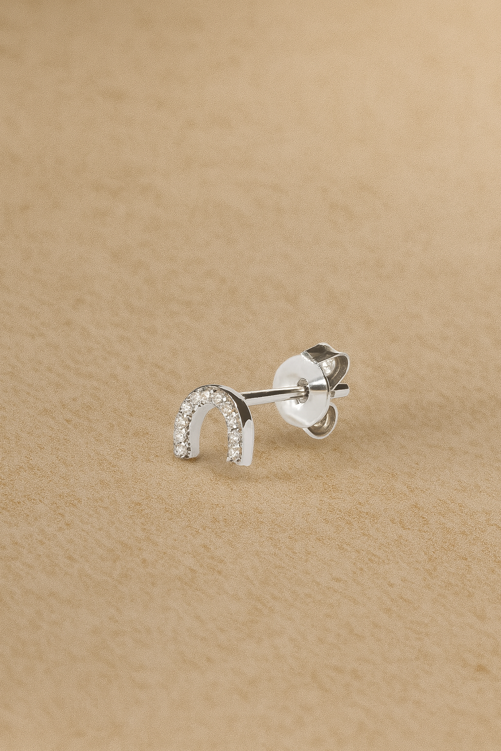 This single stud earring is made from 925 sterling silver plated in white rhodium and cast in the shape of a half-circle. It's set with an array of shimmering white cz stones. Wear it stacked with other pieces from our Ear Stories Collection.