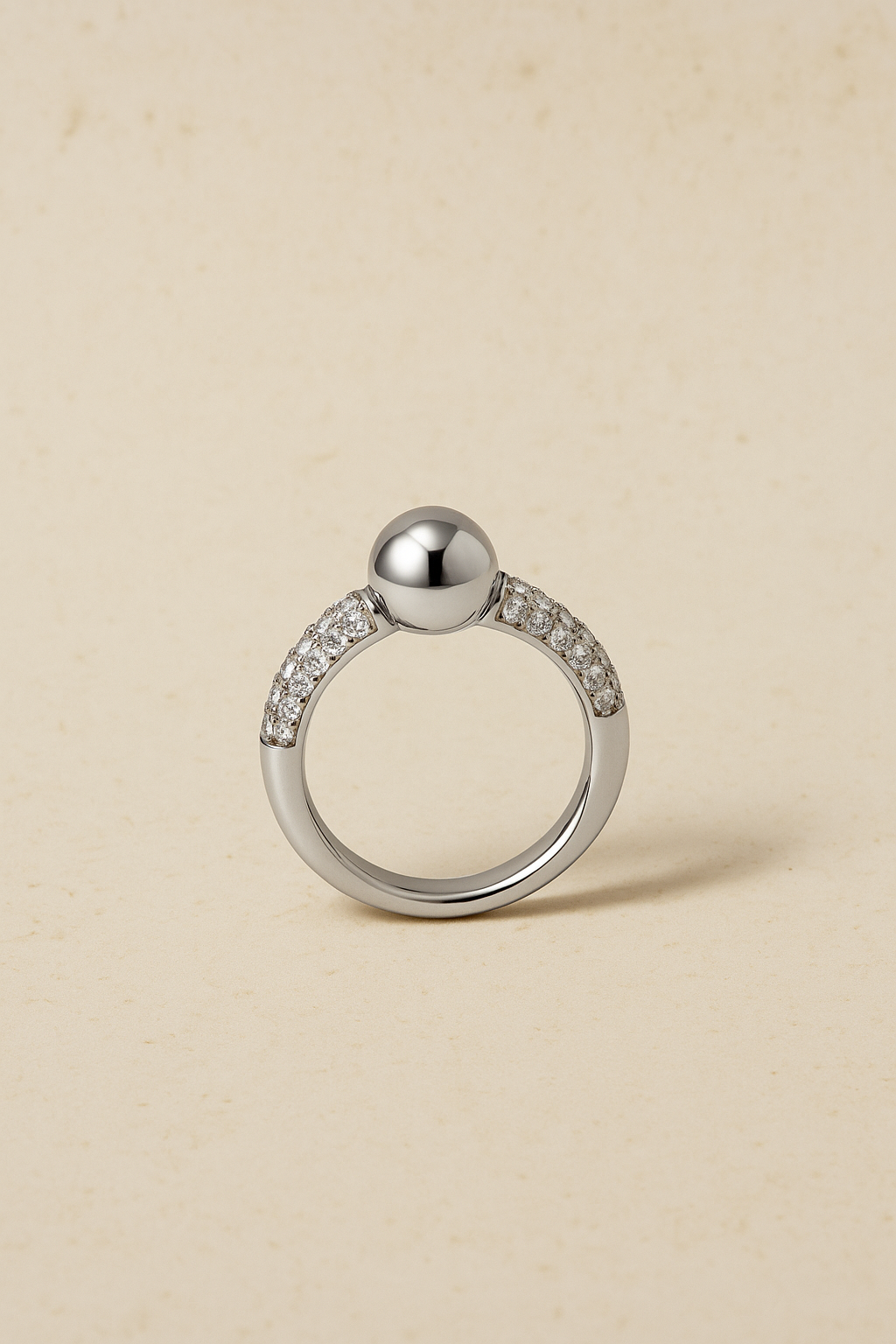 Understated yet radiant — the Lumi Inverse Silver Ring is designed for modern minimalists who love clean lines and refined details. Its polished silver sphere sits atop a delicate pavé-set band, creating an elegant balance of texture and shine.