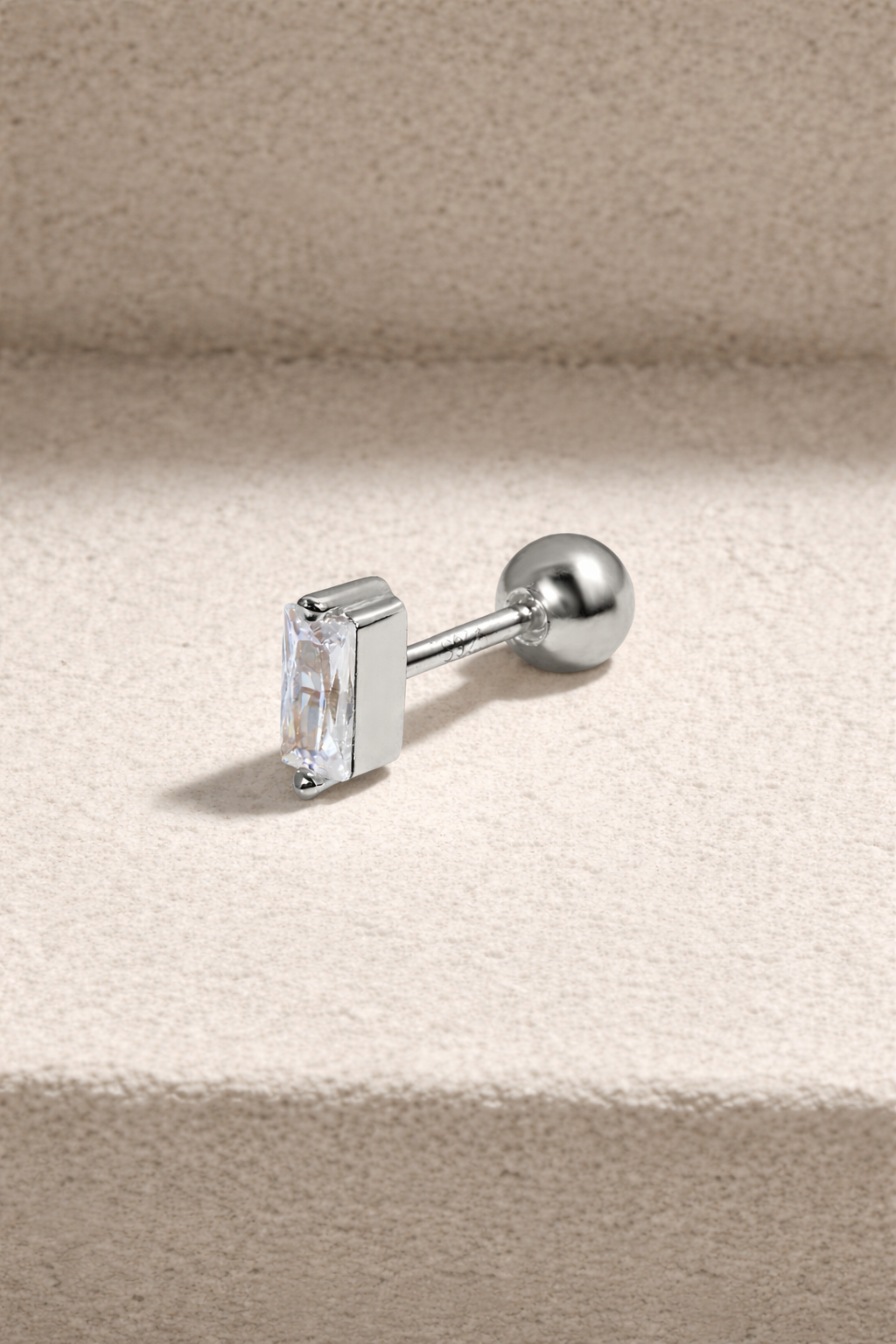 Mini baguette sterling silver stud earring (ball screw)